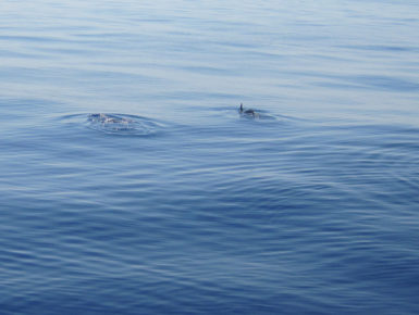 Nach etwa einer halben Stunde Fahrt ab der letzten Anlegestelle kann man schon die ersten Streifendelfine entdecken.